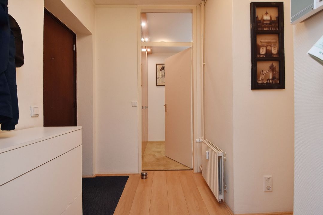 Moderne hoofdentree, ruime hal met brievenbussen- en bellentableau, hal met 3 liften Op de 3e etage galerij, entree appartement, ruime hal, meterkast, toilet met fonteintje. Royale, lichte woon-eetkamer met laminaatvloer, deur naar ruim balkon met fraai uitzicht op het Haagse bos, open moderne keuken met inbouwapparatuur o.a. gaskookplaat, oven, vaatwasser en koel/vriescombinatie, bergkast. Ruime slaapkamer met kastenwand, vanuit de slaapkamer toegang naar de badkamer met ligbad, vaste wastafel en wasmachine aansluiting.