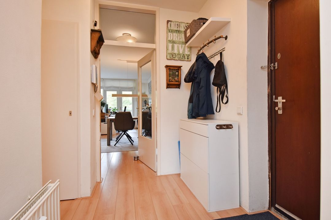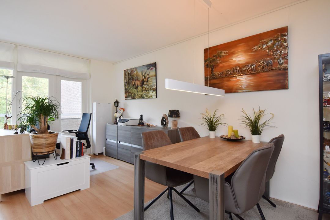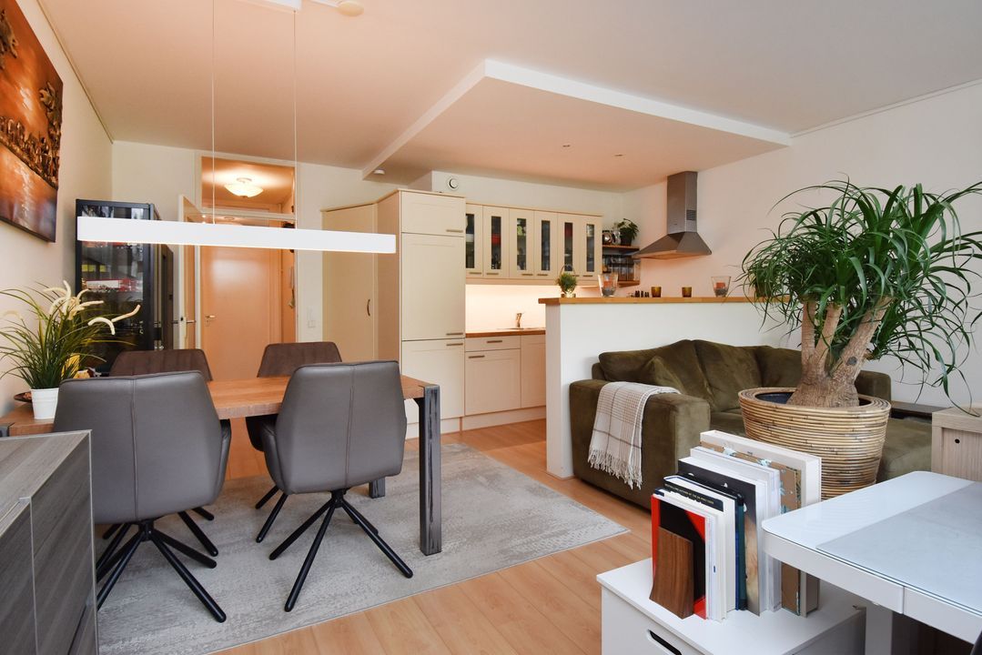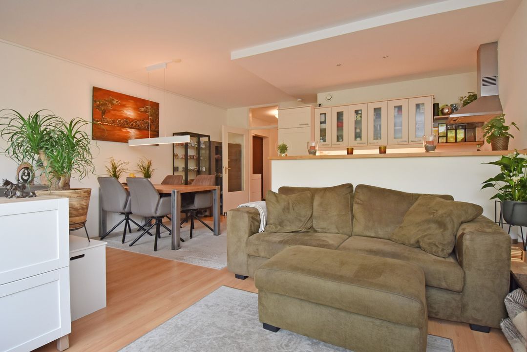 - Hal, woon-eetkamer en keuken voorzien van laminaatvloer