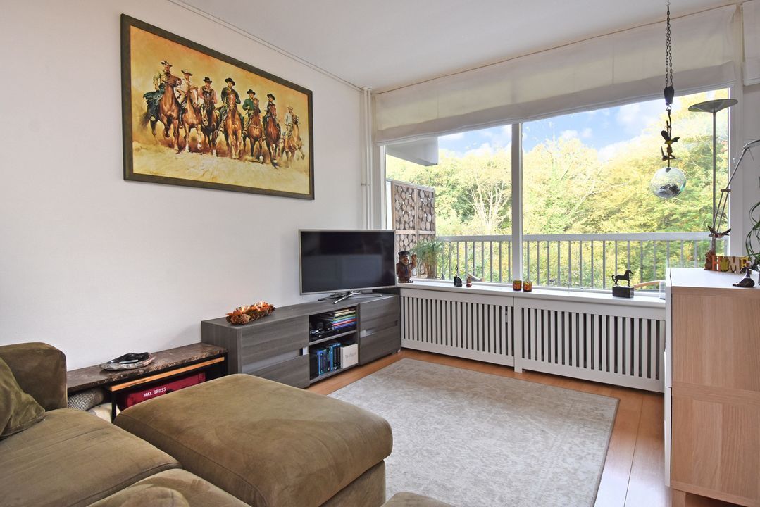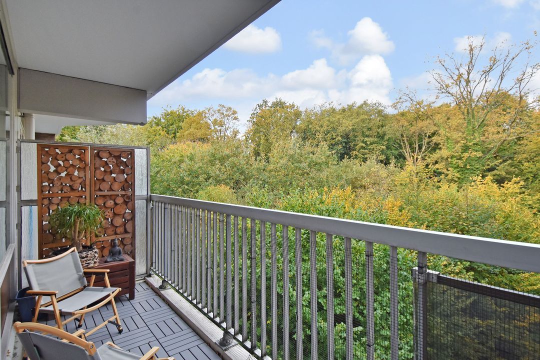 - Ruime balkon met vrij uitzicht op het Haagse Bos, einde dag zon