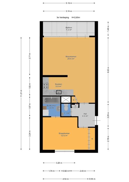 - Voor de afmetingen zie de plattegrond