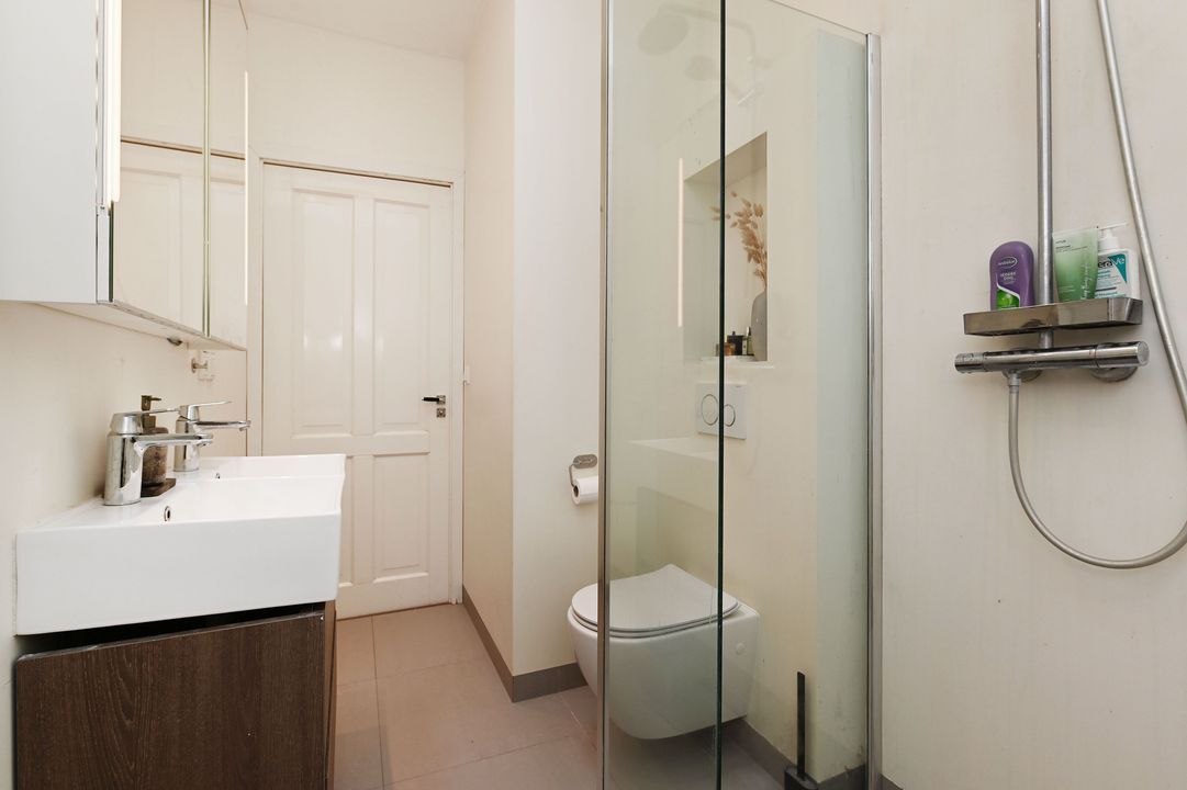 Overloop, ruime kast met wasmachine aansluiting, royale sfeervolle voorslaapkamer met openslaande deuren naar klein balkon, achterslaapkamer met openslaande deuren naar achterbalkon over de volle breedte, achterzijkamer met deur naar balkon, voorzijslaapkamer. Moderne tussengelegen badkamer met dubbele wastafel, inloopdouche, toilet en de mogelijkheid voor het plaatsen van een ligbad.