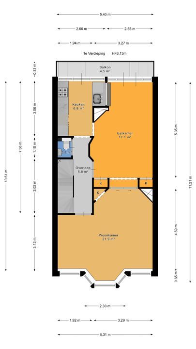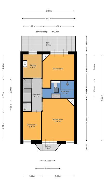 - Balkon op de eerste en tweede etage aan de achterzijde over volle breedte op het oosten
