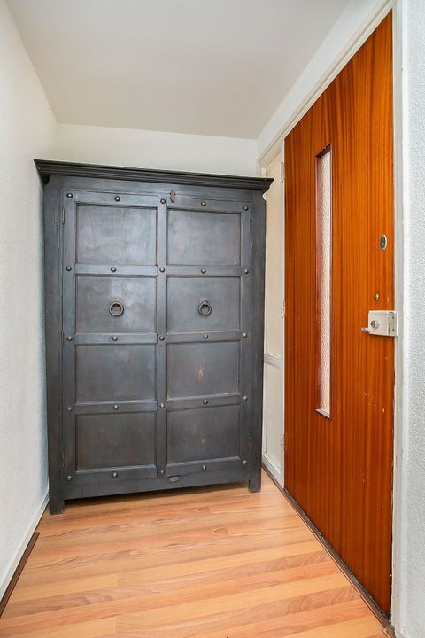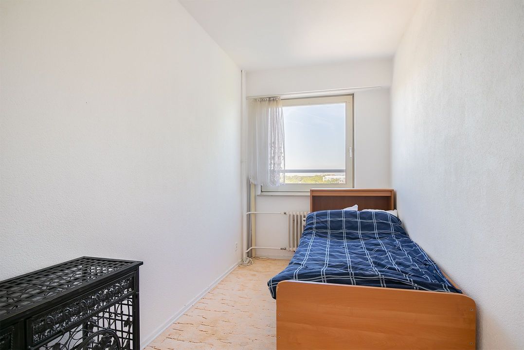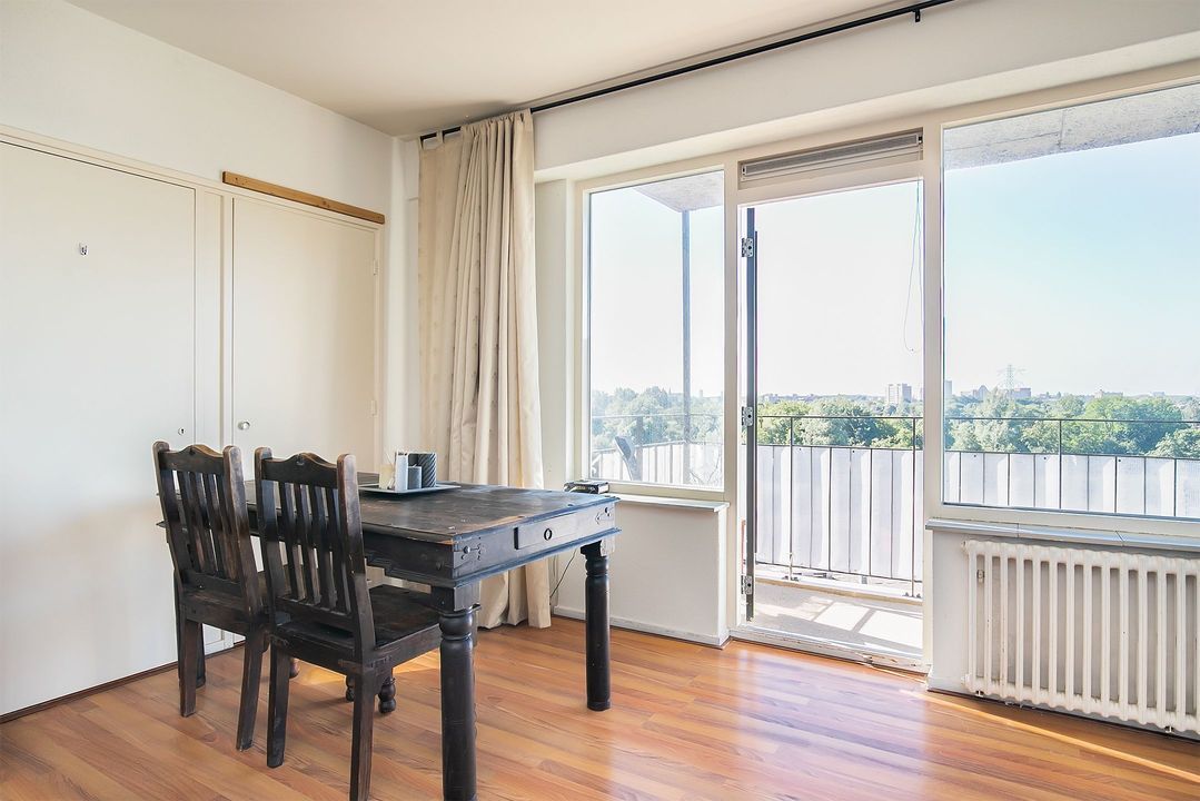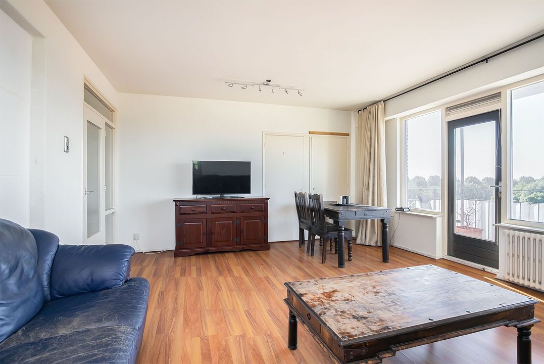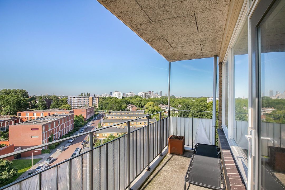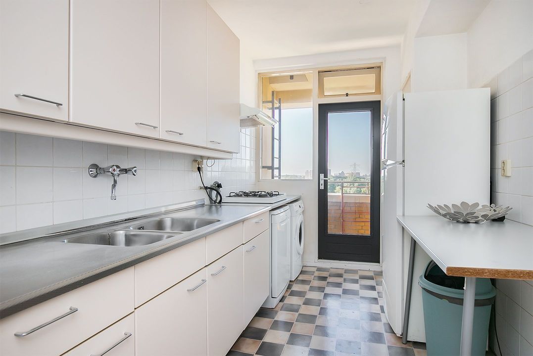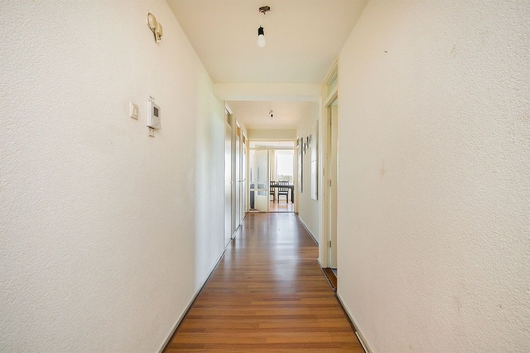 Via de goed beveiligde entree met video-intercom en aansluitend de lift naar de achtste verdieping. Entree appartement, ruime centrale hal met diepe vaste kast/berging en toegang tot alle vertrekken. Lekker lichte woon-/eetkamer met vaste kast en toegang tot het zonnige hoofdbalkon met een fraai weids uitzicht. Eenvoudige keuken met opstelplaats voor de boiler, wasmachine aansluiting, vaste kast en toegang tot het tweede balkon. Het appartement beschikt over twee goed formaat slaapkamers en een derde slaap-/studeerkamer. Eenvoudige badkamer met hoekdouche en vaste wastafel. Separaat toilet met fontein.