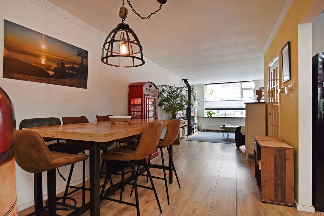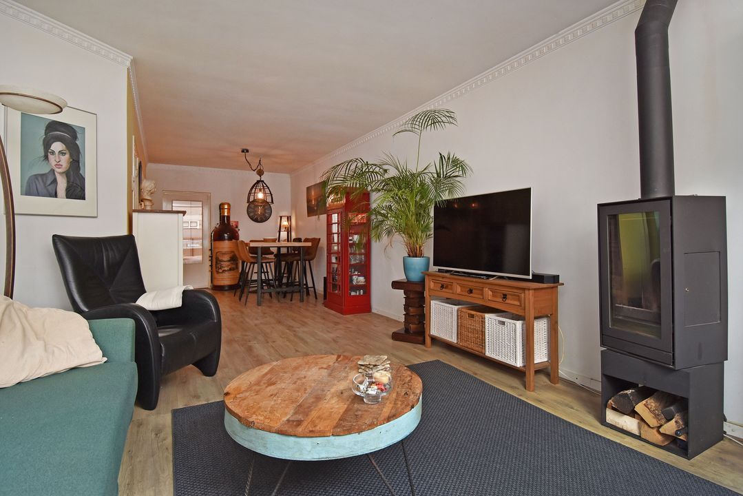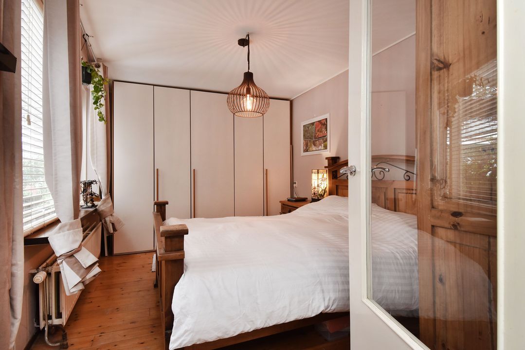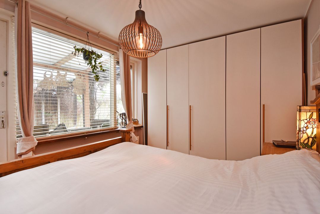 Voordeur, tochtportaal, ruime centrale hal met separaat (eerste) toilet met fonteintje. Vanuit de hal via deur voorzien van glas in roedeverdeling toegang tot de ruime woon-/eetkamer voorzien van vrijstaande houtkachel. Open keuken voorzien van hardstenen werkblad, vaatwasser groot RVS fornuis met oven, elektrische kookplaat en afzuigkap. Vanuit de keuken toegang tot de verrassend grote (bijna 100m2) zonnige en speels ingedeelde achtertuin met ruime vrijstaande houten berging/schuur, diverse leuke zitjes en tuinhaard. Aan de achterzijde bevindt zich in de uitbouw de ruime hoofdslaapkamer welke tevens toegang heeft tot de tuin. Meer dan royale badkamer met ligbad/whirlpool, hoekdouche met glazen wand, breed meubel met dubbele wastafel (tweede) toilet, dubbele handdoekradiator en vloerverwarming. Aan de voorzijde gelegen tweede prima formaat slaapkamer met naastgelegen diepe bergruimte met daarin de wasmachine aansluiting en de groepenkast.