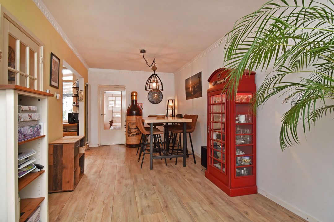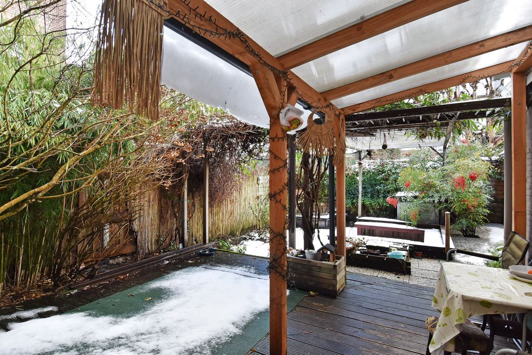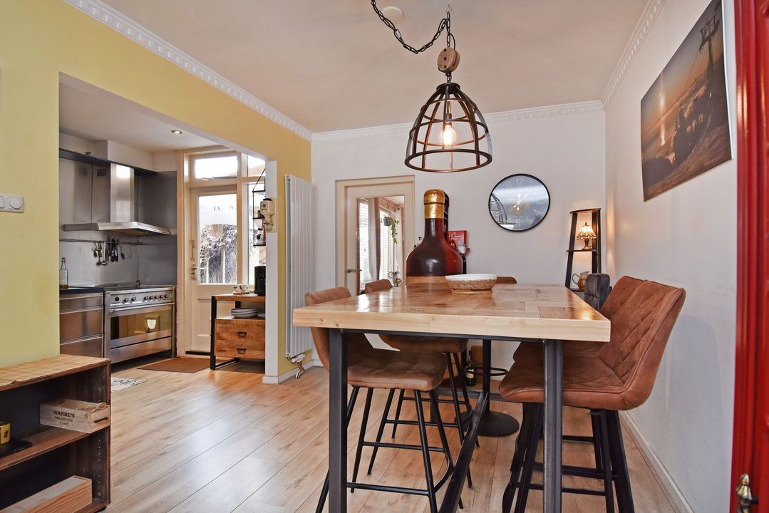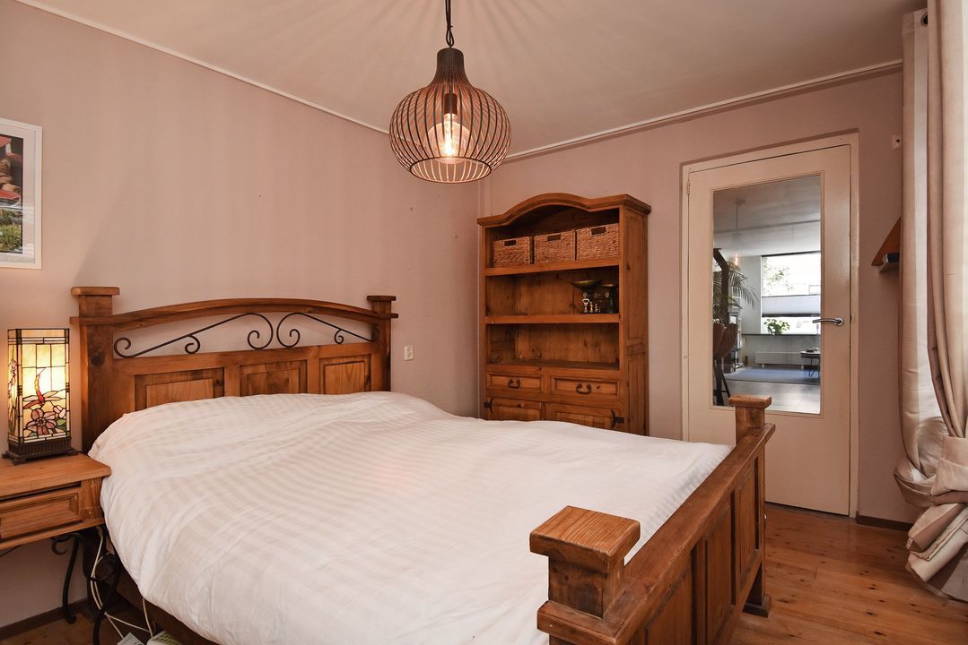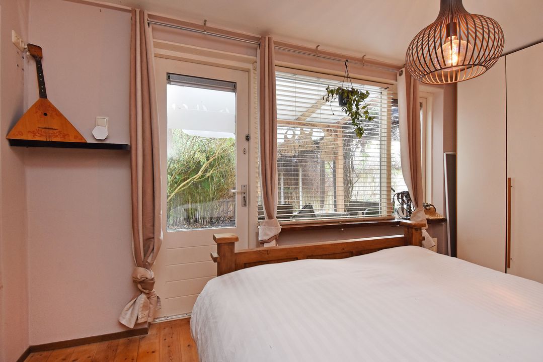 Voordeur, tochtportaal, ruime centrale hal met separaat (eerste) toilet met fonteintje. Vanuit de hal via deur voorzien van glas in roedeverdeling toegang tot de ruime woon-/eetkamer voorzien van vrijstaande houtkachel. Open keuken voorzien van hardstenen werkblad, vaatwasser groot RVS fornuis met oven, elektrische kookplaat en afzuigkap. Vanuit de keuken toegang tot de verrassend grote (bijna 100m2) zonnige en speels ingedeelde achtertuin met ruime vrijstaande houten berging/schuur, diverse leuke zitjes en tuinhaard. Aan de achterzijde bevindt zich in de uitbouw de ruime hoofdslaapkamer welke tevens toegang heeft tot de tuin. Meer dan royale badkamer met ligbad/whirlpool, hoekdouche met glazen wand, breed meubel met dubbele wastafel (tweede) toilet, dubbele handdoekradiator en vloerverwarming. Aan de voorzijde gelegen tweede prima formaat slaapkamer met naastgelegen diepe bergruimte met daarin de wasmachine aansluiting en de groepenkast.