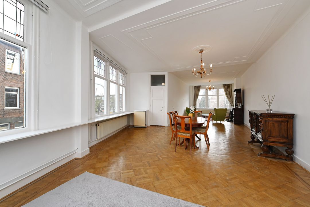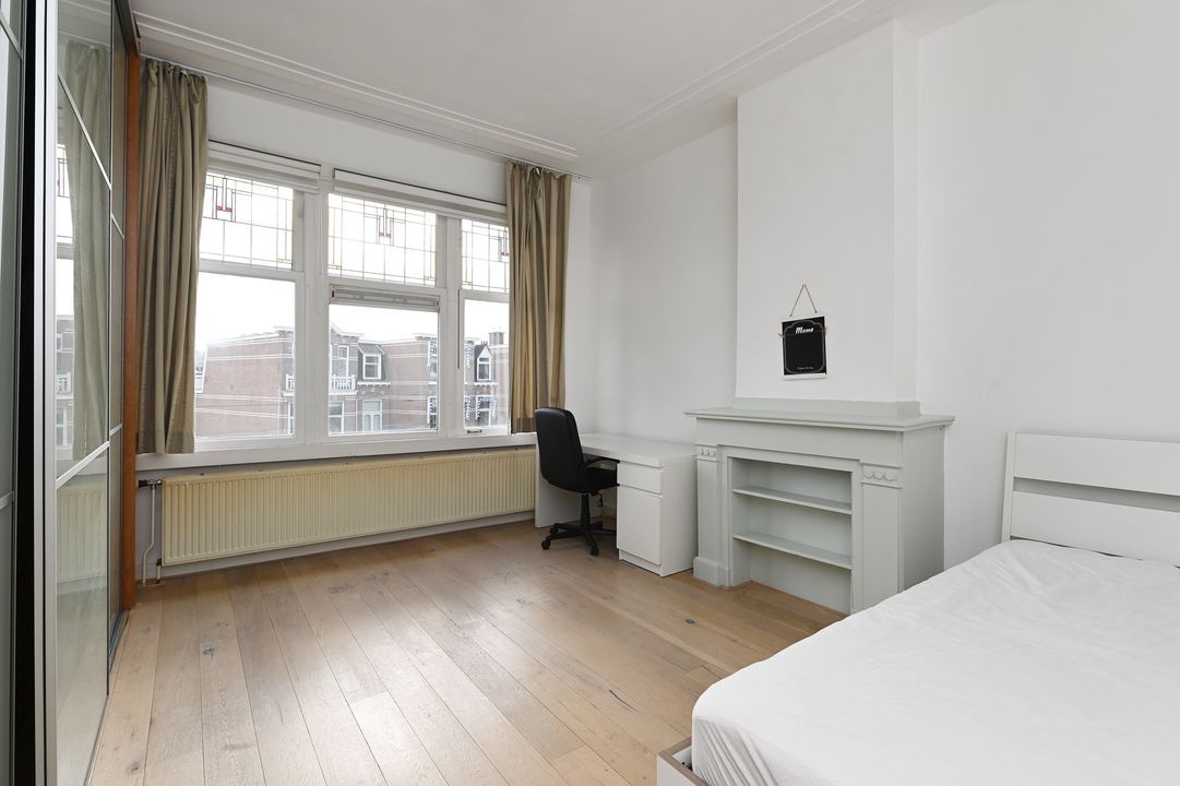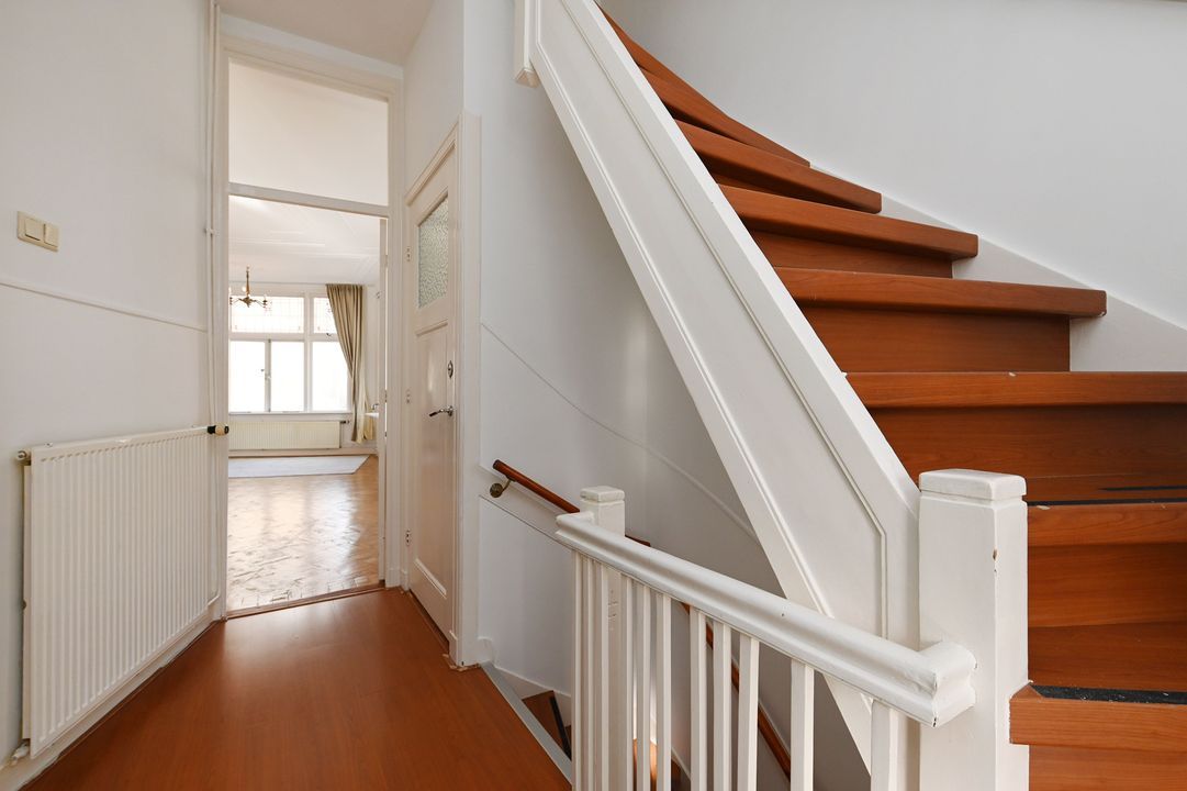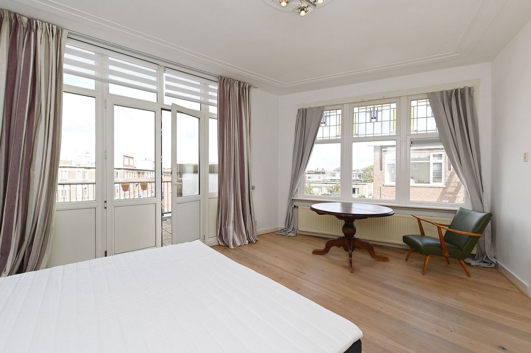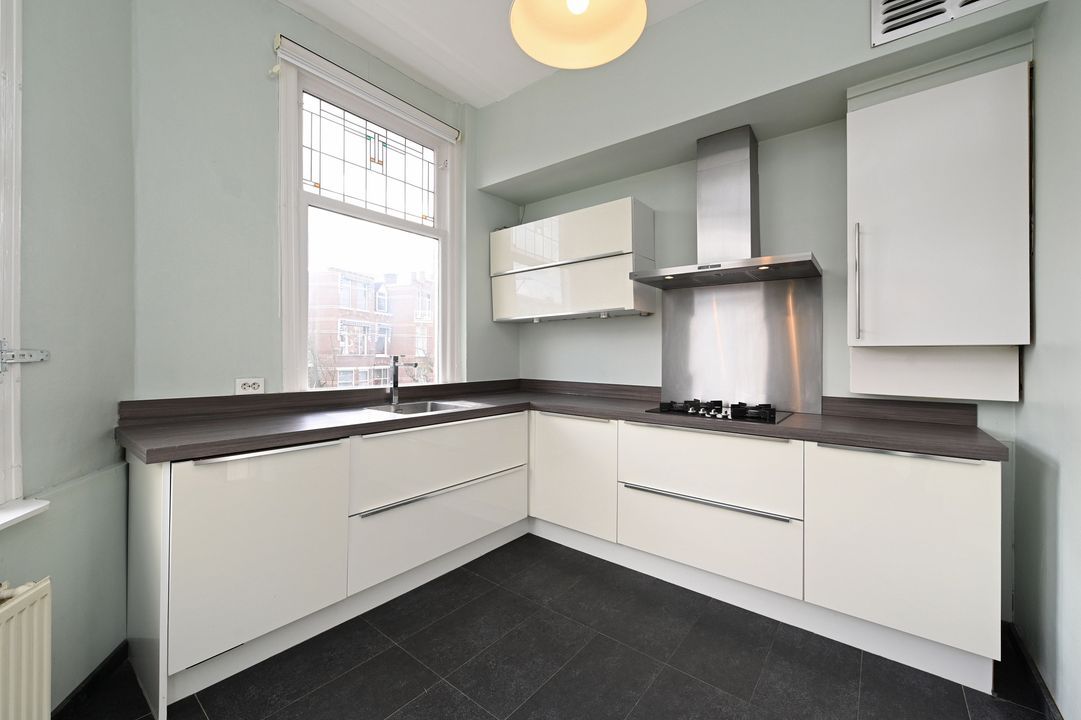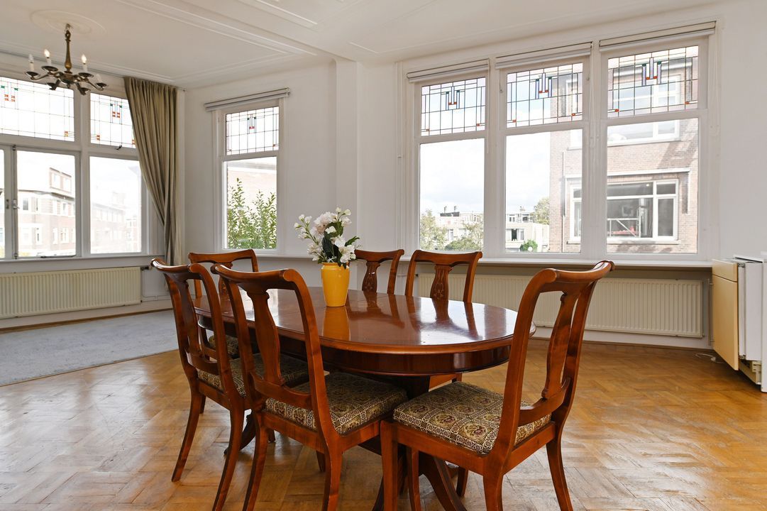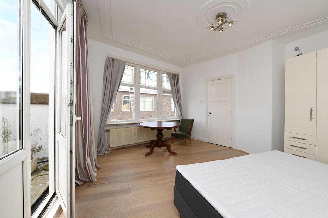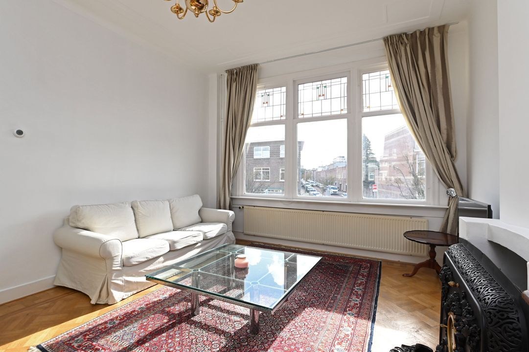 In the highly sought-after Bezuidenhout area, this characteristic and spacious two-level 5-room double upper house (approx. 150 m²) offers a perfect blend of original style details and modern comfort. Featuring authentic elements such as stained-glass windows and decorative ceilings, three bedrooms, and a balcony. Excellent accessibility by tram, bus, and train (Laan van NOI and Central Station) as well as by car (A12 and A44 motorways). The lively Theresiastraat shopping street is just around the corner, and the city center is only three tram stops away. The Haagse Bos park is nearby, and Scheveningen beach is about a 10-minute drive.