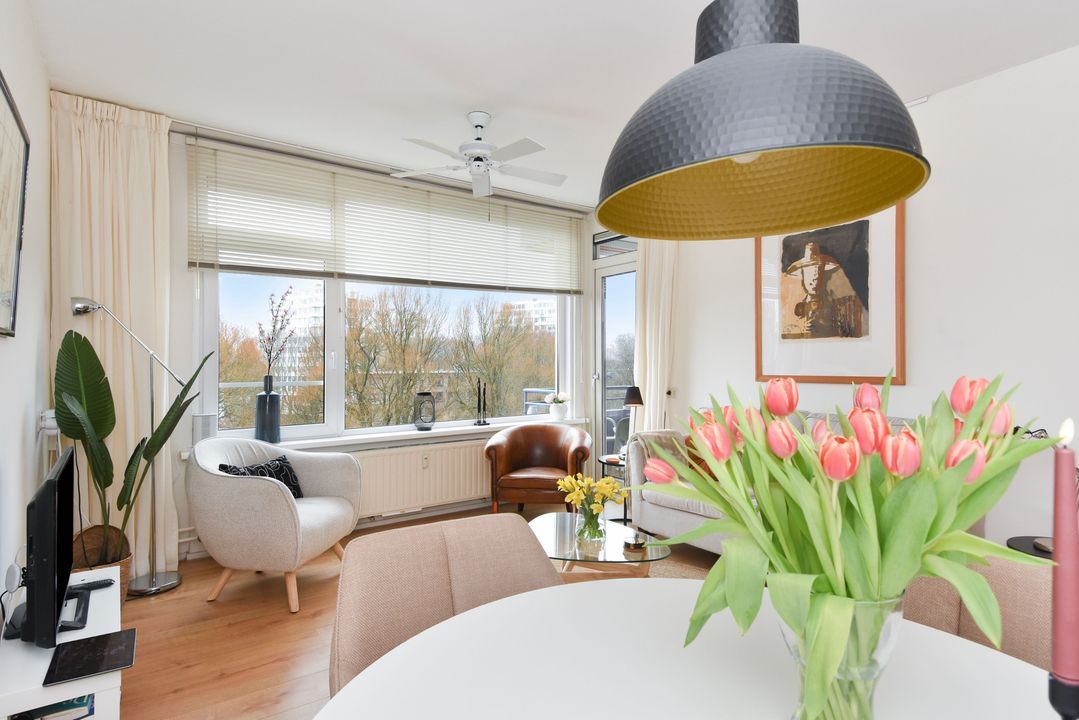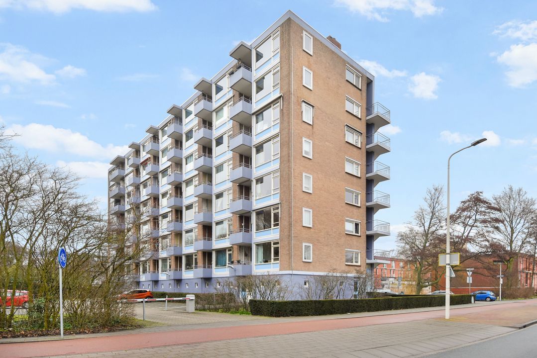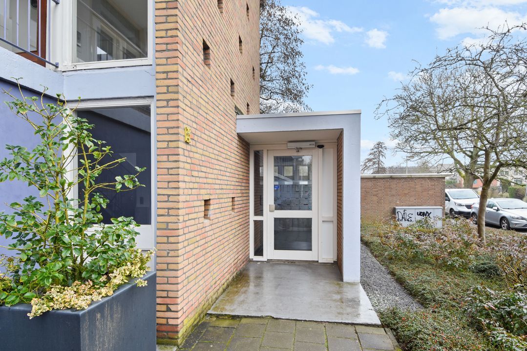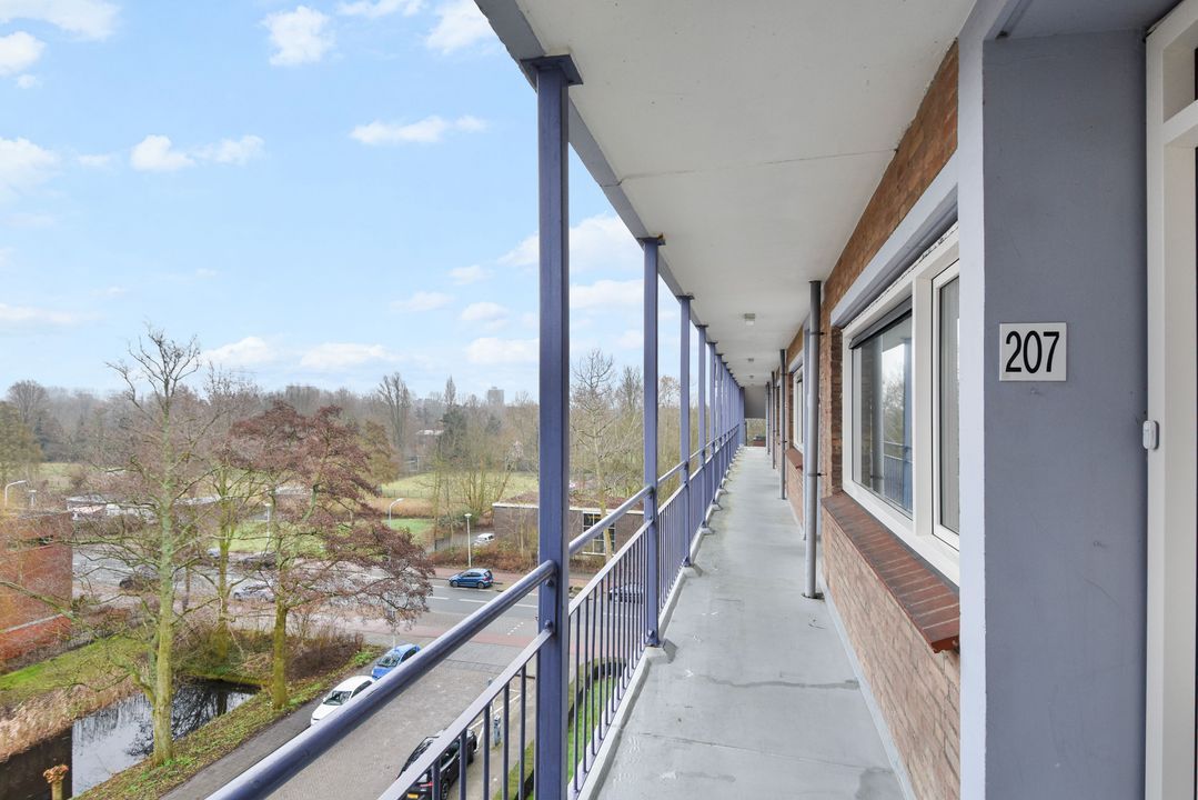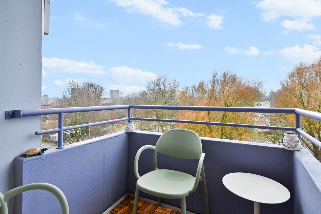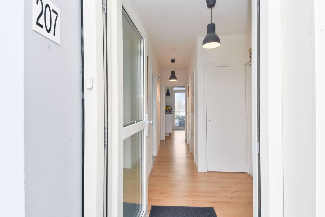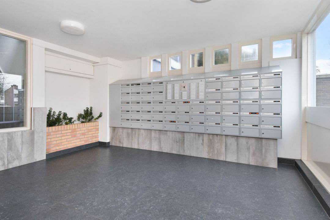 Centrale entree, ruime moderne hal met brievenbussen- en bellentableau, hal met trappenhuis , 2 liften, lift naar de 5e etage. Via galerij entree appartement, ruime gang, meterkast, kast met wasmachine en elektrische boiler, modern toilet met fonteintje, lichte, zonnige woon-eetkamer met deur naar balkon, fraai uitzicht, moderne keuken met inductie kookplaat, oven, vaatwasser en koelkast en toegang naar zonnig balkon. Ruime slaapkamer, vanuit de slaapkamer toegang naar de moderne badkamer met douche, vaste wastafel en mechanische ventilatie.