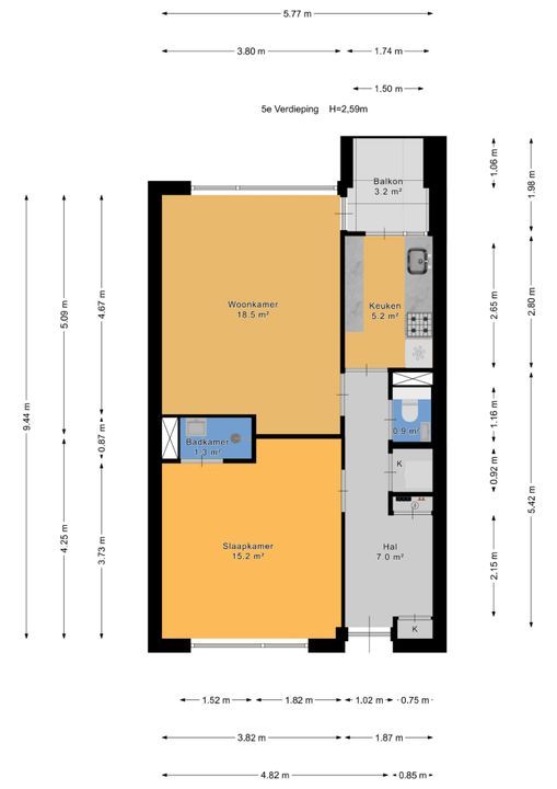 - Voor afmetingen zie de plattegrond