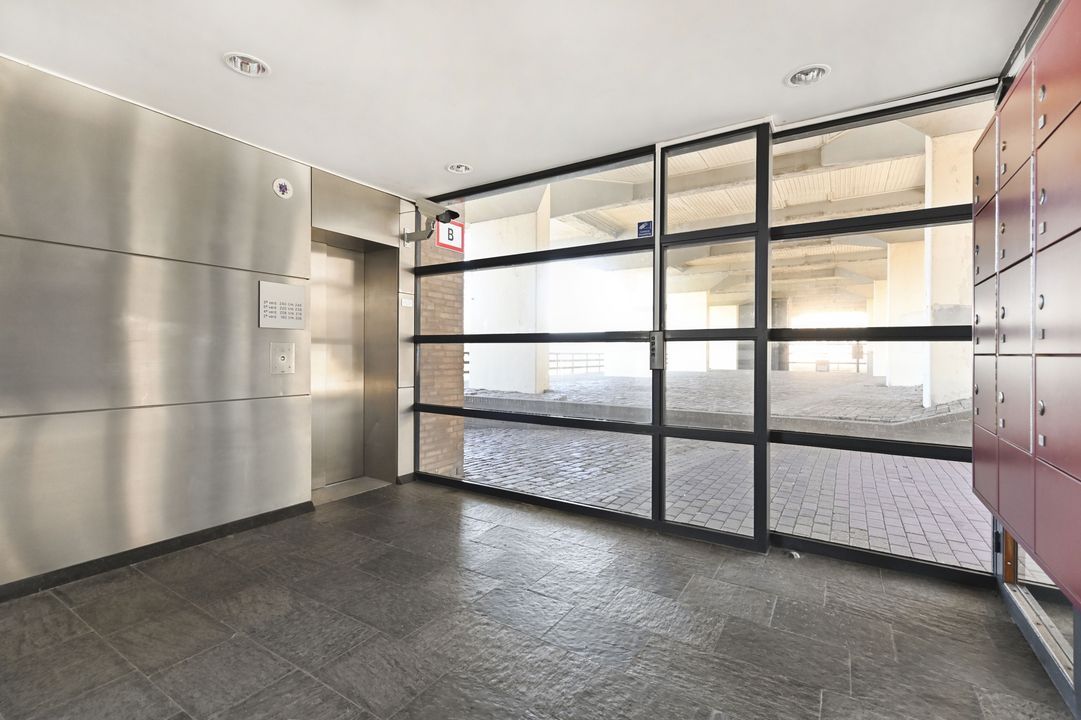 Secure communal entrance with video intercom, elevator, and staircase.
