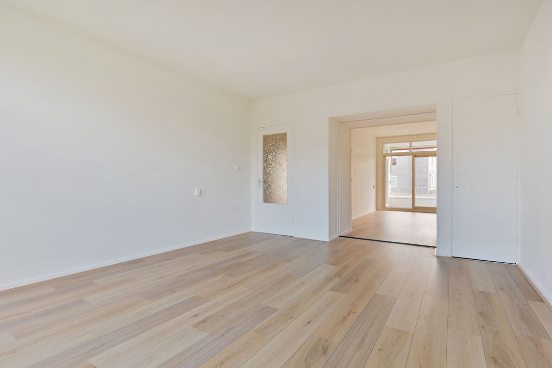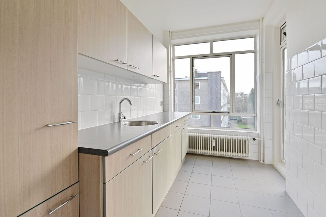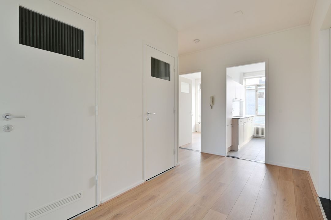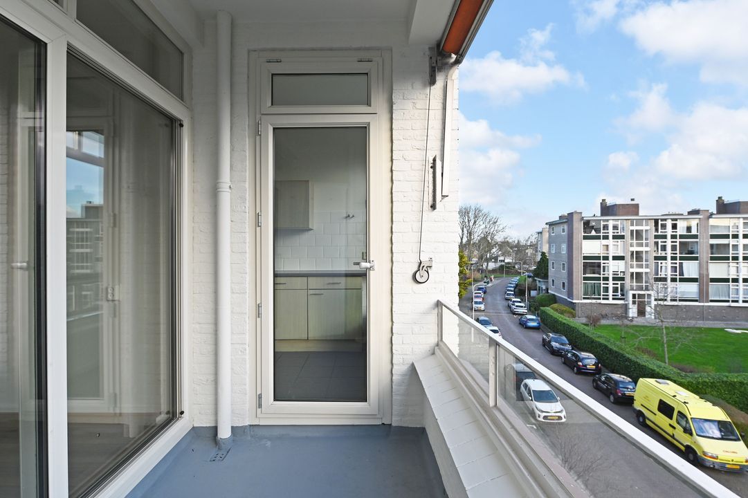 Gemoderniseerd gemeenschappelijk entree met brievenbussen- en bellentableau, trap of lift naar derde etage, entree appartement, ruime hal welke toegang geeft tot alle vertrekken. Royale zonnige woon-eetkamer ensuite met vaste kasten, vanuit de eetkamer schuifpui naar achterbalkon op het zuidoosten met balkonkast. Eenvoudige nette keuken met toegang tot het balkon. Ruime voorslaapkamer aan de voorzijde, tweede kleinere slaap/studeerkamer aan de achterzijde. Nette badkamer met douche en vaste wastafel. Separaat toilet met fonteintje.