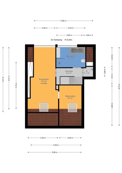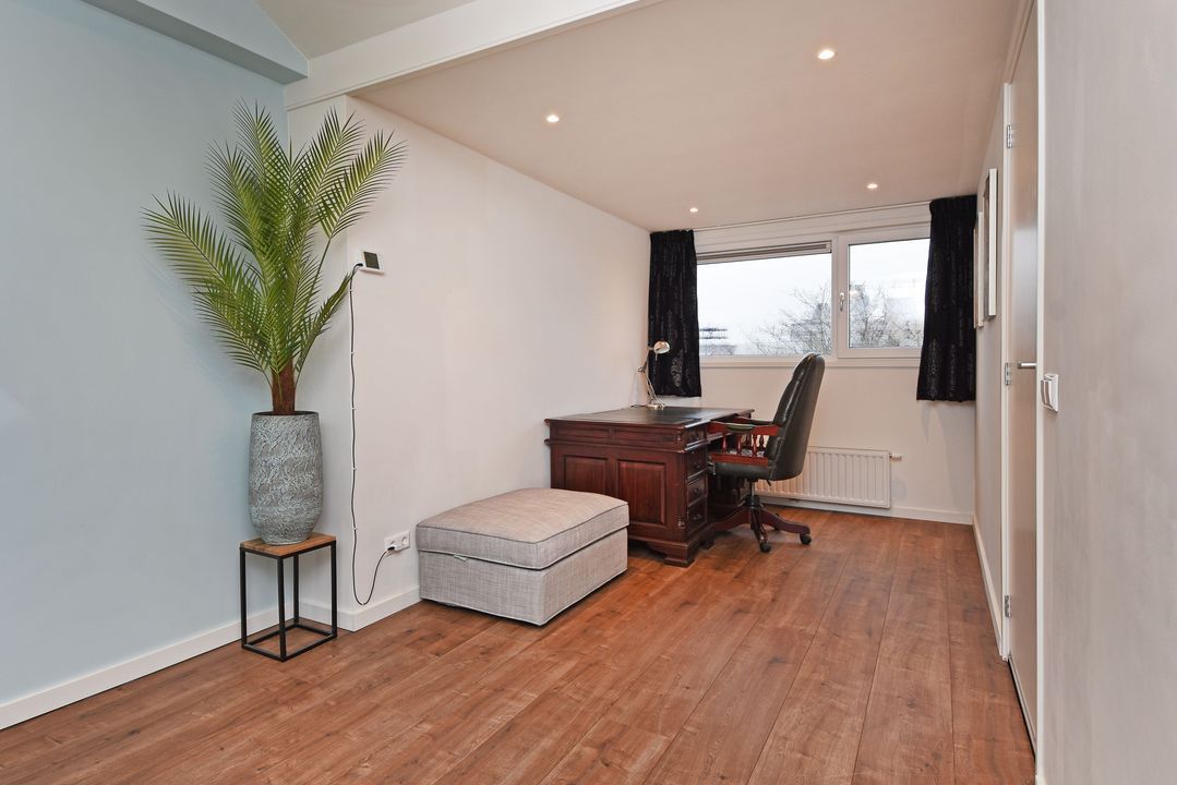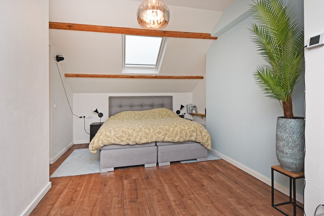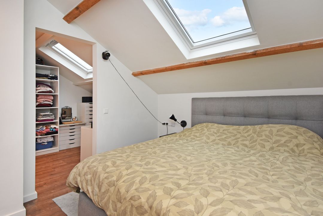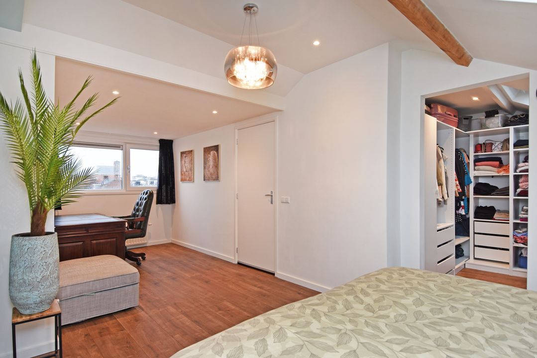 royale, lichte slaapkamer over de volle diepte van het huis. Vanuit slaapkamer toegang naar werk/kleedkamer. Dakkapel over de breedte aan de achterzijde, aan de voorzijde 2 dakramen.