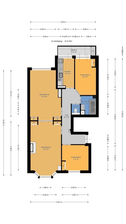 Via open portiek naar de eerste verdieping, entree appartement. Ruime gang met meterkast en toegang tot alle vertrekken. Slaapkamer aan de voorzijde. Sfeervolle en ruime woon-/eetkamer ensuite met originele separatie voorzien van schuifdeuren met glas-in-lood, lijstwerk plafonds, erker aan de voorzijde met glas-in-lood bovenlichten en originele schouw aan de achterzijde. Aan de achterzijde gelegen nette keuken in rechte opstelling, voorzien van wasmachine aansluiting en diverse inbouwapparatuur (koelkast met vriesvak, combi-oven, gaskookplaat, afzuigkap). Vanuit de keuken toegang tot het zonnige balkon op het westen. Tweede slaapkamer aan de achterzijde met openslaande deuren naar het balkon. Badkamer met ligbad en vaste wastafel in meubel. Separaat toilet.