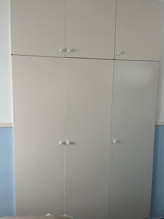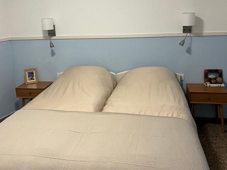 Een heerlijke lichte slaapkamer met een tweepersoonsbed, nachtkastjes een ingebouwde kledingkast en een airco (zowel warm als koud).