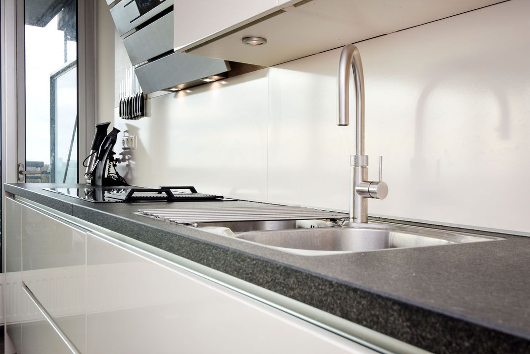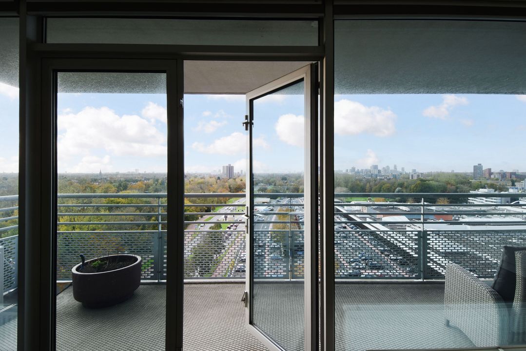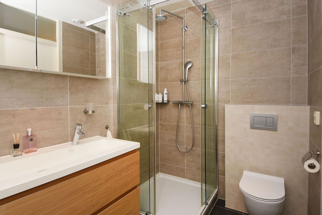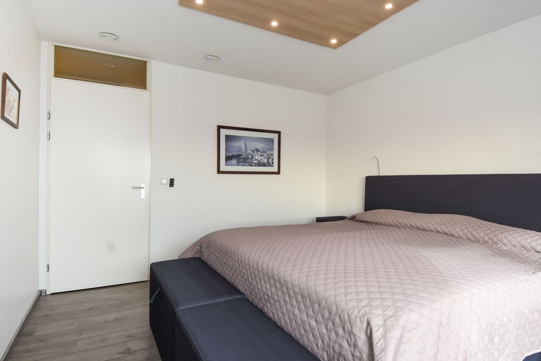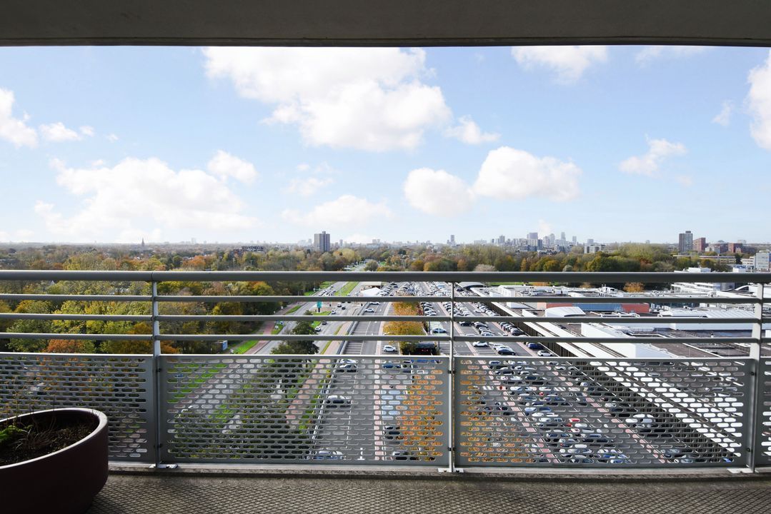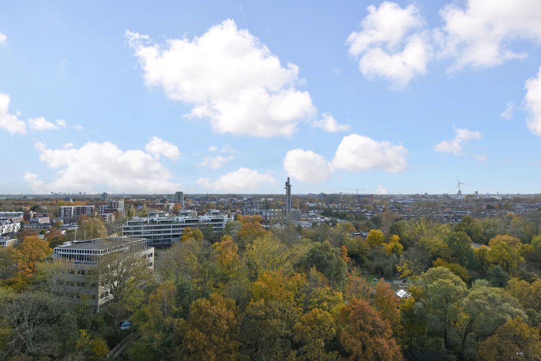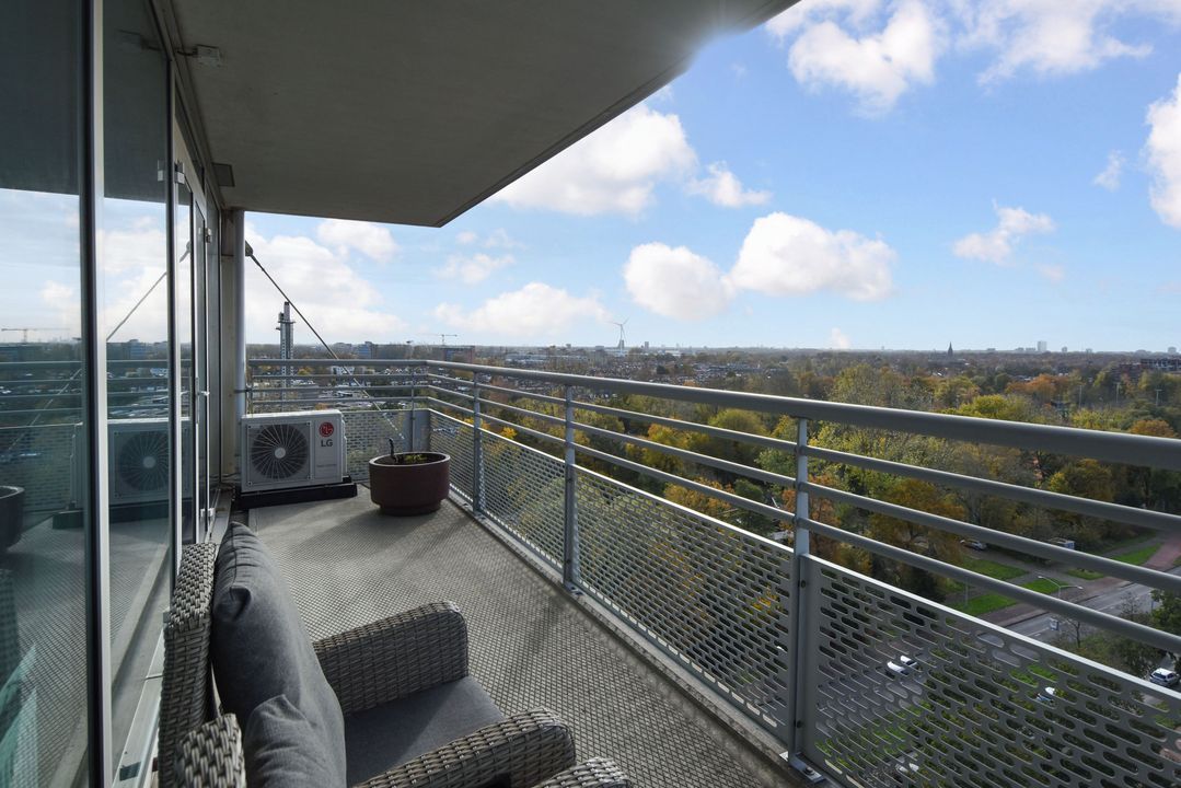 The spacious living and dining area boasts wide views over The Hague and opens onto a sunny private terrace, perfect for relaxing or entertaining. The half-open contemporary kitchen is fully equipped with a fridge, oven, microwave, cooker, and dishwasher.
