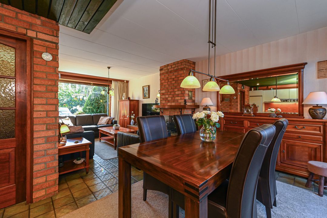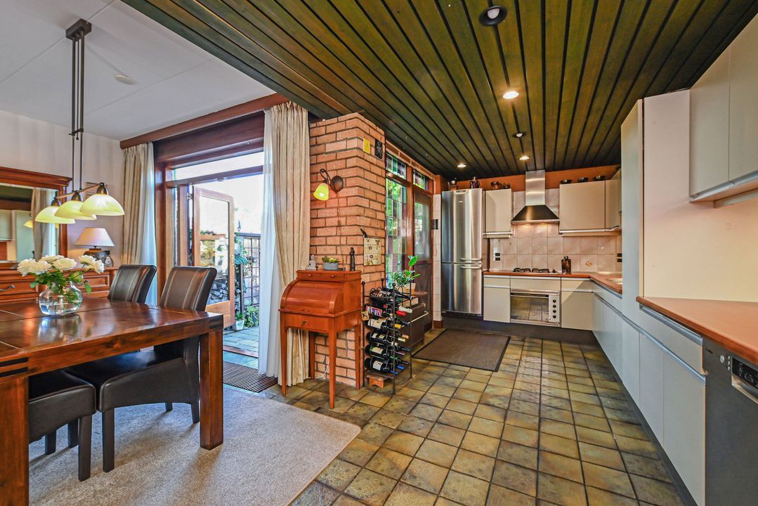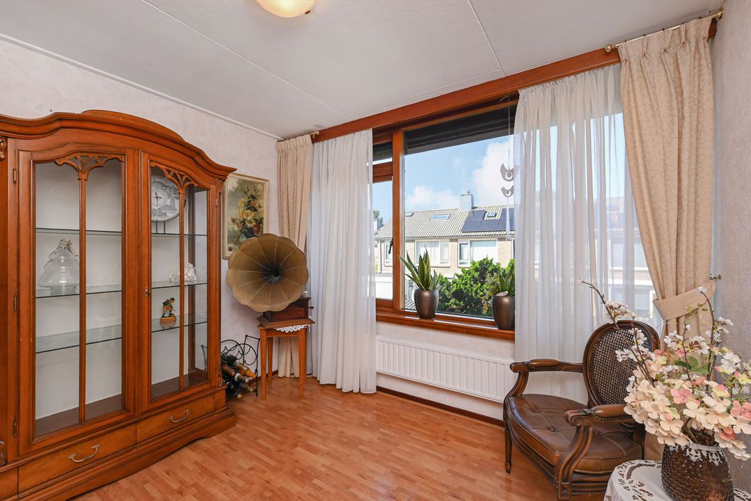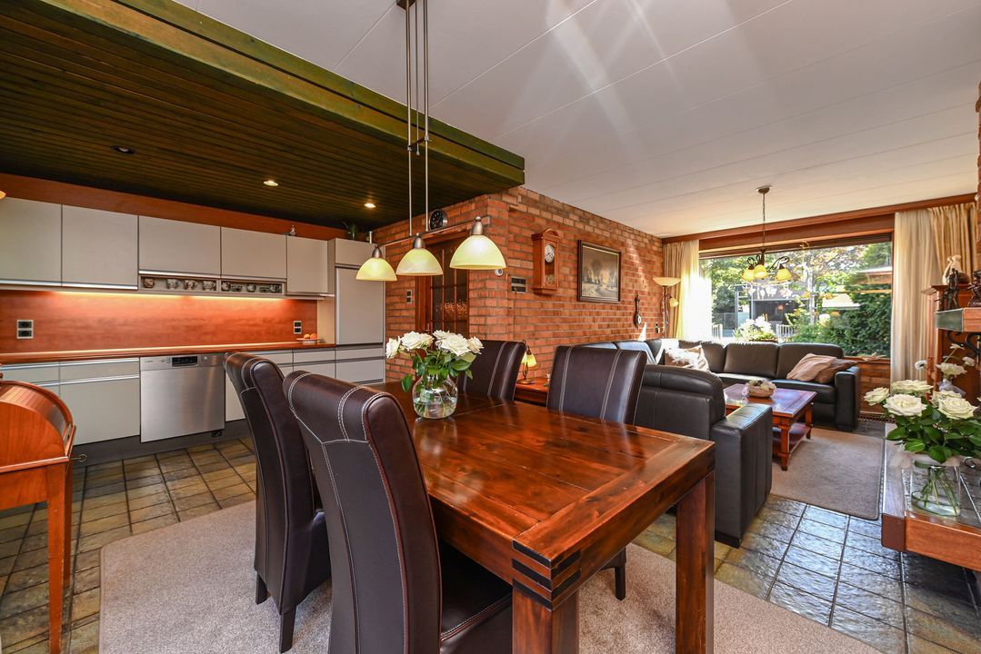 Voortuin, entree tot de woning, tochtportaal met meterkast en garderobe. Gang, toilet met fontein. Toegang tot de woonkamer met royale open keuken aan de achterzijde van de woning. Dubbele openslaande deuren bieden toegang tot de zonnige tuin op het zuid-west/westen. Tuin met achterom, overkapping en stenen schuur welke is voorzien van water, verwarming en elektra. In de schuur een opstelplaats voor wasmachine en droger.