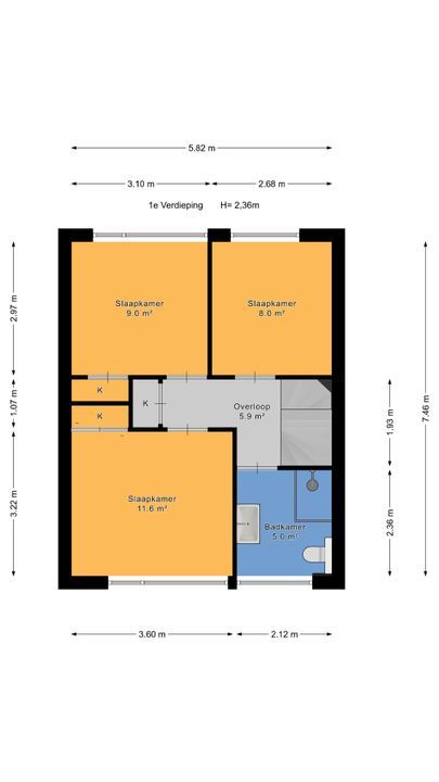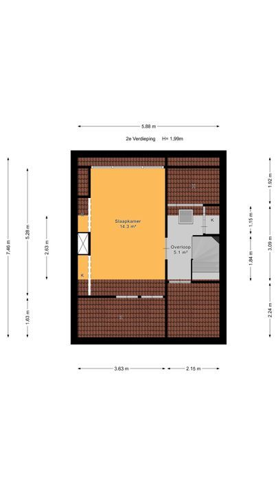- De woning beschikt over een bruto woonoppervlakte van 116M2 (plafondhoogte van 1m99 op zolder)