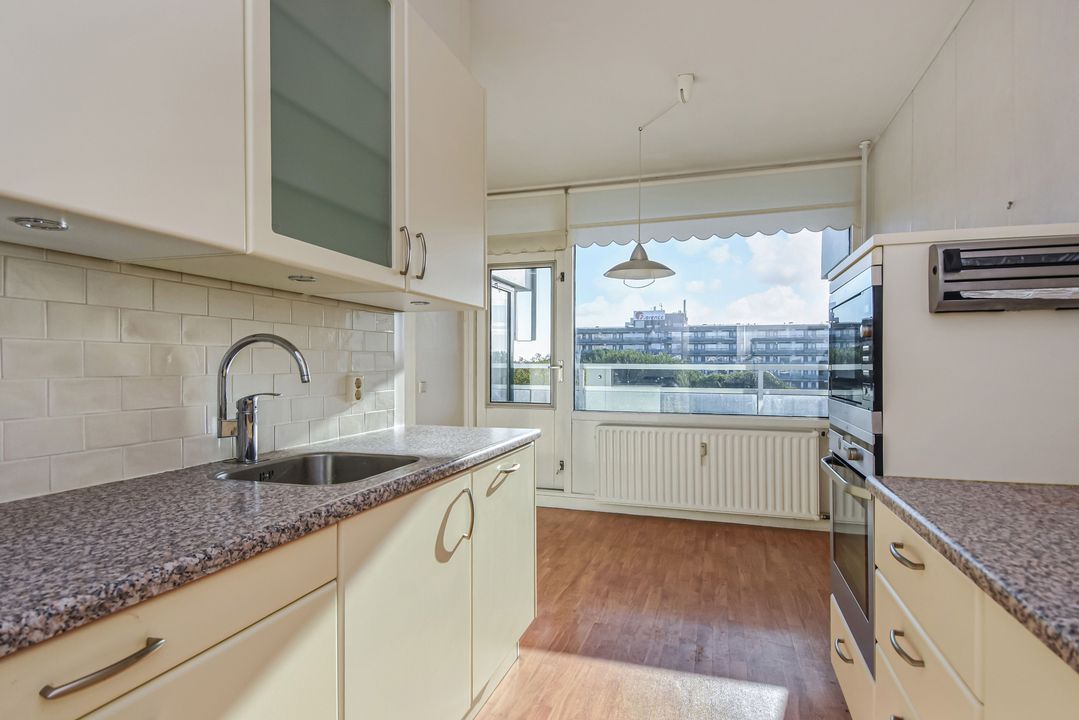 OP EEN MOOIE EN RUSTIGE LOCATIE TE MIDDEN VAN VEEL GROEN GELEGEN ZEER RUIM (115M2) OPGEZETEN NET ONDERHOUDEN 3-KAMER (VOORMALIG 5-KAMER) APPARTEMENT OP DE ZEVENDE VERDIEPING MET VEEL LICHTINVAL RUIME BALKONS AAN ZOWEL DE VOOR- ALS ACHTERZIJDE EN EIGEN BERGING OP DE BEGANE GROND.
